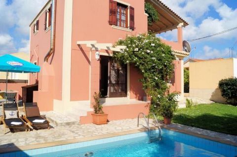 Two-storey villa of 120 sq.m. on a plot of 385 sq.m. in the traditional settlement of Sarlata, Kefalonia. It extends on 2 levels, on the ground floor which consists of living room, dining room, kitchen, 1 bedroom, bathroom with WC and with an iron staircase we lead to the first floor which consists of 2 bedrooms and 1 WC-bath with whirlpool. The villa has from the veranda of the floor a good view to the village and the distant horizon with the Ionian sea. Outside the ground floor is the swimming pool and the garden which are surrounded by a wooden fence which provides the required privacy and seclusion. Just 3 km away are the famous beaches of Avithos, Ai Helis, the airport at 1.5 km and the Capital at 8 km.