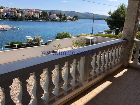Lovely house of 385 sq.m. for sale, situated in an attractive location near Šibenik, direct on the seafront. It stands on the plot of 510 sq.m. and spreads over three floors offering gorgeous sea views. This house includes five apartments. In the ground floor there are large garage, cellar and apartment which consists of hallway, kitchen, dining area, living room, two bedrooms, one bathroom and spacious terrace of 40 sq.m. First floor includes apartment with three bedrooms, two bathrooms, hallway, kitchen, dining area, living room and balcony of 20 sq.m. Second floor features three 1-bedroom apartments. Each apartment on the second floor includes one bedroom, one bathroom, kitchen, living room and private balcony. This house is surrounded by nicely decorated yard with summer kitchen and barbecue area. It includes 8 parking spots (five in front of the house and three behind the house). Infrastructure: access road, electricity, water, septic tank.