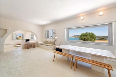 Seafront Villa in Paros consists of 4 bedrooms, 1 auxiliary bedroom ,2 rooms under construction in the basement , 3 bathrooms, and office/study, kitchen, large dining and living room with fireplace and lovely courtyard in the center of the design of the home.