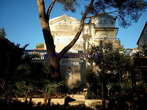 Detached family villa for sale. It is positioned in a quiet location, in a pine-tree shadow in the first row to the sea. It is arranged over four floors: souterrain, ground floor and two upper floors. The souterrain features a garage and a 1-room apartment with the terrace. The ground floor includes a big 1-room apartment with spacious terrace. Two more apartments, one 2-room apartment and a 3-room apartment with terraces with the sea view are on the two top floors. The villa is surrounded by well maintained Mediterranean garden. It includes a parking space for three vehicles and a berth. It is possible to add a pool. Beautiful view of the sea and islands. Infrastructure: access road, electricity, water, septic tank.