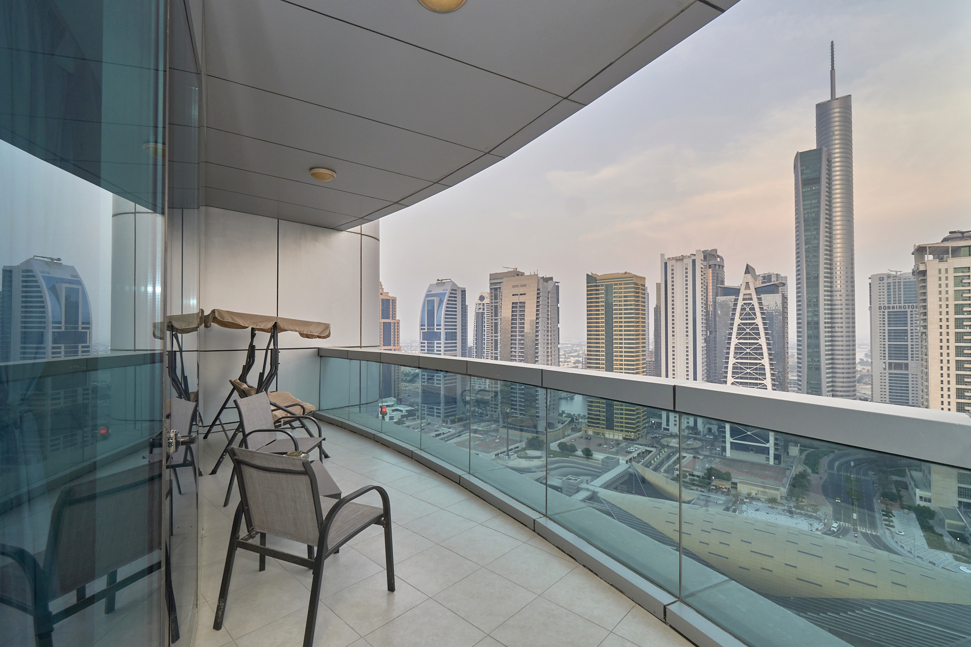 Full Sheikh Zayed Road and JLT view from the balcony and windows.