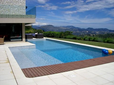 This modern villa has stunning views over the village of Vence and the famous Baie des Anges. The large dining outdoors, the large pool and the garden offers the perfect place for a relaxing holiday. The five bedrooms are all on the first floor and are equipped with air conditioning. The villa has three bathrooms and a separate WC on this floor. The ground floor consists of living room and dining room and a living area open plan. The large kitchen and very well equipped separated. This entire floor offers the same great views through the large glass doors leading to the garden and the pool