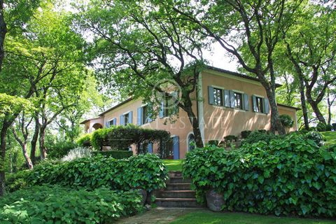 The prestigious villa for sale in Tuscany is located within a unique landscape, surrounded by a beautiful and well maintained garden in which there is a beautiful swimming pool and an olive grove of 1400 trees. The main villa is on two levels with a surface area of about 540 square metres. Internally, it is as follows: On the ground floor there is a spacious entrance hall, a sumptuous lounge with a majestic fireplace and two windows in which to enjoy a unique countryside view as well as that of the town of Cetona. There is also a large dining room and a beautiful winter garden, a kitchen, a wardrobe and a bathroom. Only a few steps from the entrance hall, to a slightly higher level, are three suites with private bathrooms. At basement level, as well as the property’s important technical areas to the rear, there are two other bedrooms with ensuite bathrooms, one of which is on two levels, further smaller bedroom with bathroom and a beautiful large kitchen that opens directly onto the patio with a magnificent pergola and outdoor dining area, ideal for outdoor dining during the summer. All rooms on this floor have a French door giving access to a beautiful corner of the garden which has a pergola, ideal for al fresco dining during the summer. Not far from the elegant villa, surrounded by an olive grove, is another small farmhouse ideal as an annex with a total area of about 300 square metres on two levels. The ground floor has a loggia, a living room with a beautiful fireplace as its main feature, a kitchen, and two bedrooms with ensuite bathrooms while the basement has space for the villa’s storage as well as for agricultural equipment, a storage area and the property’s technical area. This is an undoubtedly enchanting property with a truly unique atmosphere, thanks to its surrounding park/garden with tall trees (cypresses and oaks), typical Mediterranean plants as well as flowers. Possibility to buy largest part of the internal and external furniture.