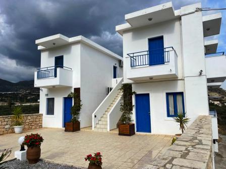 A great building complex of 6 apartments in total located just 2km from Makrigialos and all amenities. It is a three story building with basement, ground floor and first floor. The first floor consists of three apartments sold all together and can easily be converted into a nice 100m2 apartment. Each apartment is 33.50m2 and has a bathroom, a bedroom and an open living area with kitchen. All services are connected. The apartments are sold fully furnished and have A/C. They also have nice balconies enjoying beautiful mountain views. Lastly, there is street parking area for all three apartments at the front.