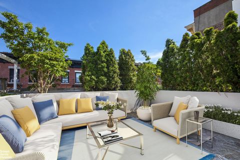History and luxury mingle to stunning effect in this unique 20-foot wide elevator townhouse with a rear carriage house located on a quiet tree-lined block in Greenwich Village. Hidden behind a 19th-century brick facade, you’ll find this contemporary loft-like residence featuring dramatic entertaining spaces, 7 fireplaces, a tranquil garden with a plunge pool, and a sun-drenched rooftop terrace with open views.