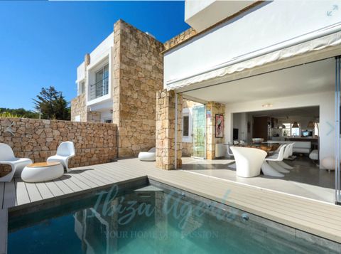 With two independent accesses, all to the outside. It has a large terrace, with electric awning and remote control, a spacious living room with two modern sofas designed and convertible to accommodate 2 extra people, a design table for 8/10 diners, the living room has glazed enclosures with total opening to the solarium and pool area, from where you can admire unparalleled views and views to Formentera.