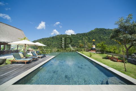 This beautiful riverside property comprises a 4 bedrooms traditional boutique guesthouse and outdoor dining terrace together with separate 3 bedrooms private villa suites and infinity pool set in a tropical garden just below the guesthouse. Extending down the valley from the pool towards the river, are the villa own rice fields and organic gardens.
