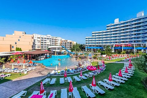 IBG Real Estates offers for sale this furnished two-bedroom apartment, located on the 2nd floor of Trakia Plaza complex in Sunny Beach. The complex is located in the center of Sunny Beach just 200 meters from the beach, a short walk from the center of the resort and close to the most visited bars and restaurants of the resort. Trakia Plaza has a large swimming pool with water slides, children's pool, restaurant, green areas, reception and more.