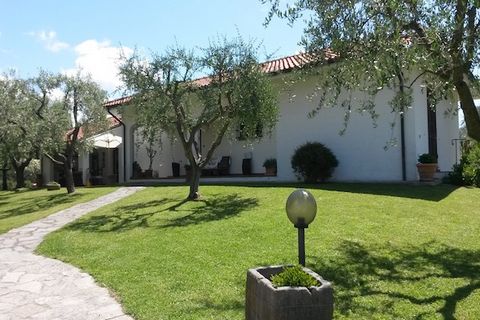The property boasts a porch with a wood oven and a garden with olive trees, various flowers and trees.