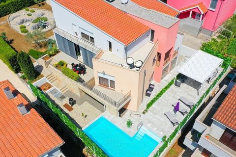 Newly built family villa with modern design and swimming pool situated in Zadar. The surface of the property is 310 m2 and is built on a plot of 474 m2. It is located in a quiet location although close to all the necessary services. It is the ideal choice for both daily life and tourist rental. The house consists of a total of three floors: basement, ground floor and first floor. The basement, which was originally a garage, is made up of a billiard room, gym, entertainment room, fund and boiler room. The ground floor has an entrance hall, living room, dining room and kitchen, bathroom and an internal circular staircase leading to the upper floor. On the first floor there are three bedrooms with fitted wardrobes and two bathrooms. Heating is carried out by electric current radiators (Daikin) implemented in all rooms. The villa was completely renovated a year ago. In the courtyard there is a large swimming pool of 30 m2, a relaxation area with deck chairs and a barbecue. This property offers a pleasant corner of peace in an extraordinary urban location.