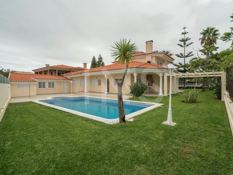 Fantastic villa with six suites for sale in the Costa da Guia area, in Cascais. Property with 380 sqm of useful area, consisting of two floors. Floor 0: a large entrance hall, a 50 sqm living room with marble floor, fireplace and air conditioning, with access to terrace / garden and barbecue area with support sinks, three suites with built-in wardrobes, an equipped kitchen with 20 sqm + a suite (maid’s room) or laundry area and a social toilet. Garage box for two/three cars and a large swimming pool, surrounded by a well-kept garden with automatic watering and lighting. Floor 1: two large suites with wardrobes. One of the suites also has a closet area in a recently painted room. The villa has central heating and an ambient music system. The entire frame is in aluminum with double glazing. Property located very close to the farm of bicuda and quinta da marinha, and 5 minutes from the access to the A5 and the center of Cascais.