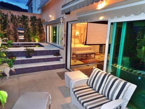 It includes a living room opening onto the terrace, 3 suites, 4 bathrooms, an office and a dining room integrated into the fully equipped Italian kitchen. One of the suites overlooks the terrace and 2 suites include a Jacuzzi. A service area is also available.